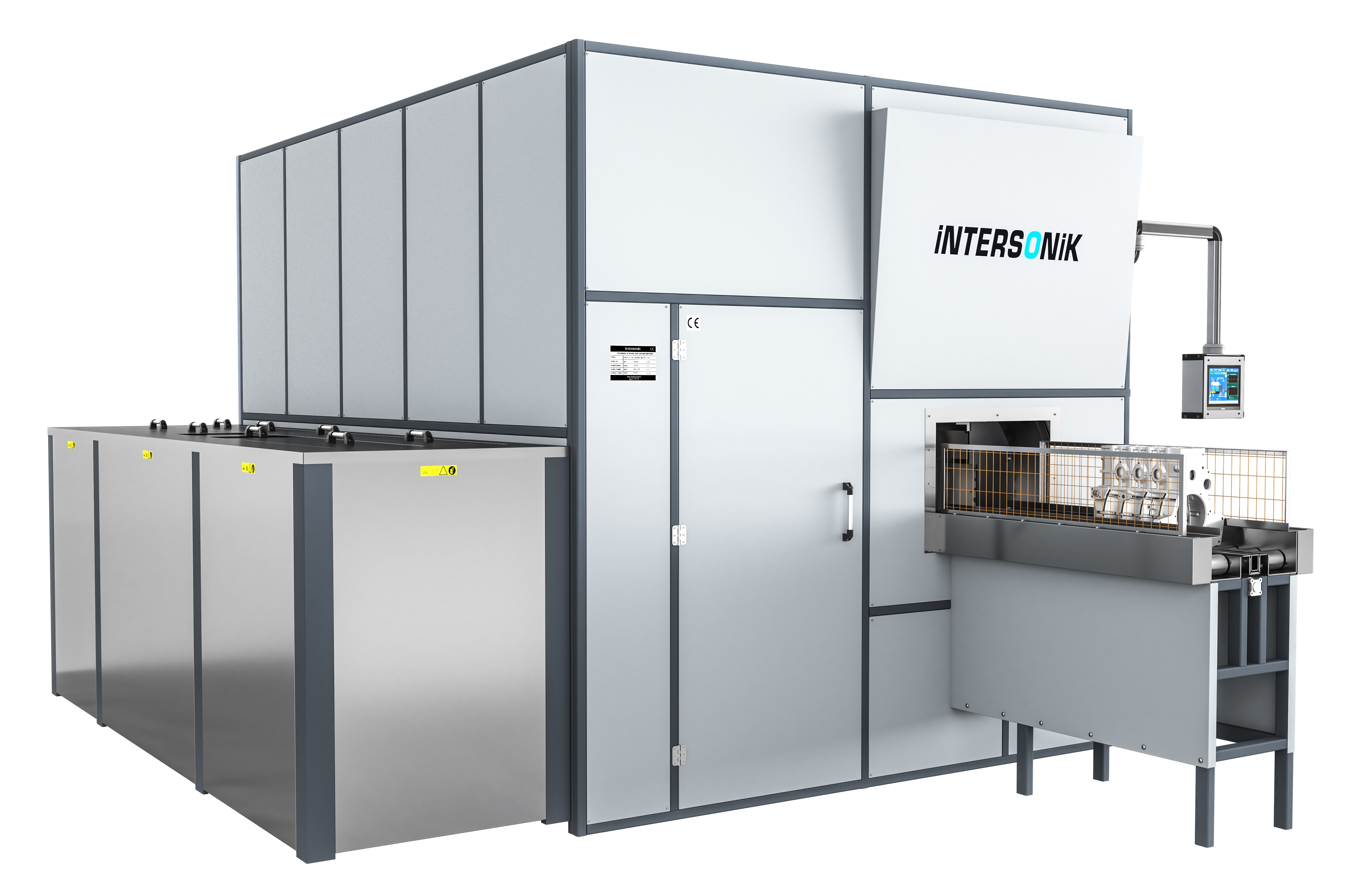 - Das Gerüst und die Schaltschränke sind mit Epoxy-Lack auf Edelstahl lackiert. Dies ermöglicht eine garantiert lange und anhaltende Lebensdauer der Maschine.